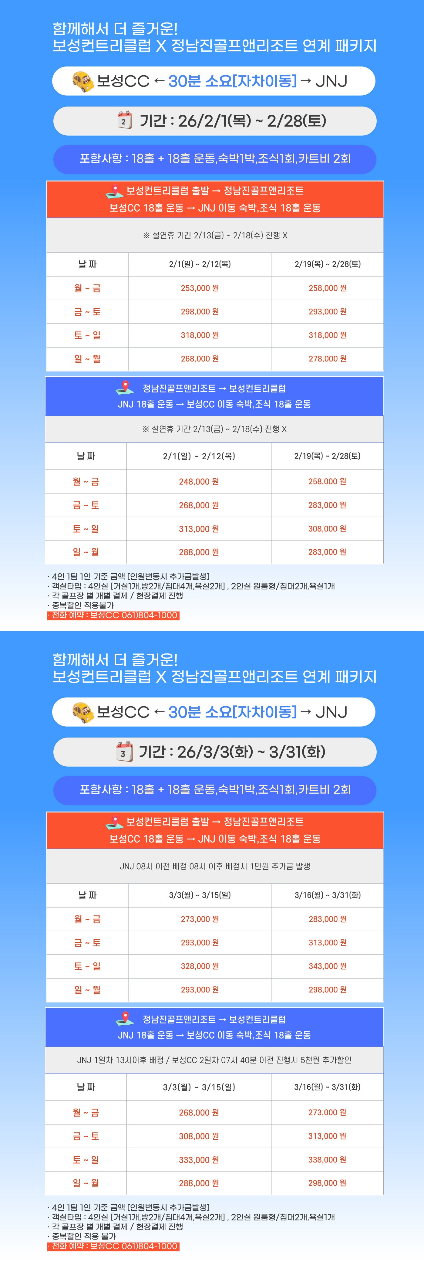 2-3월 정남진 X 보성CC 1박2일 연계패키지