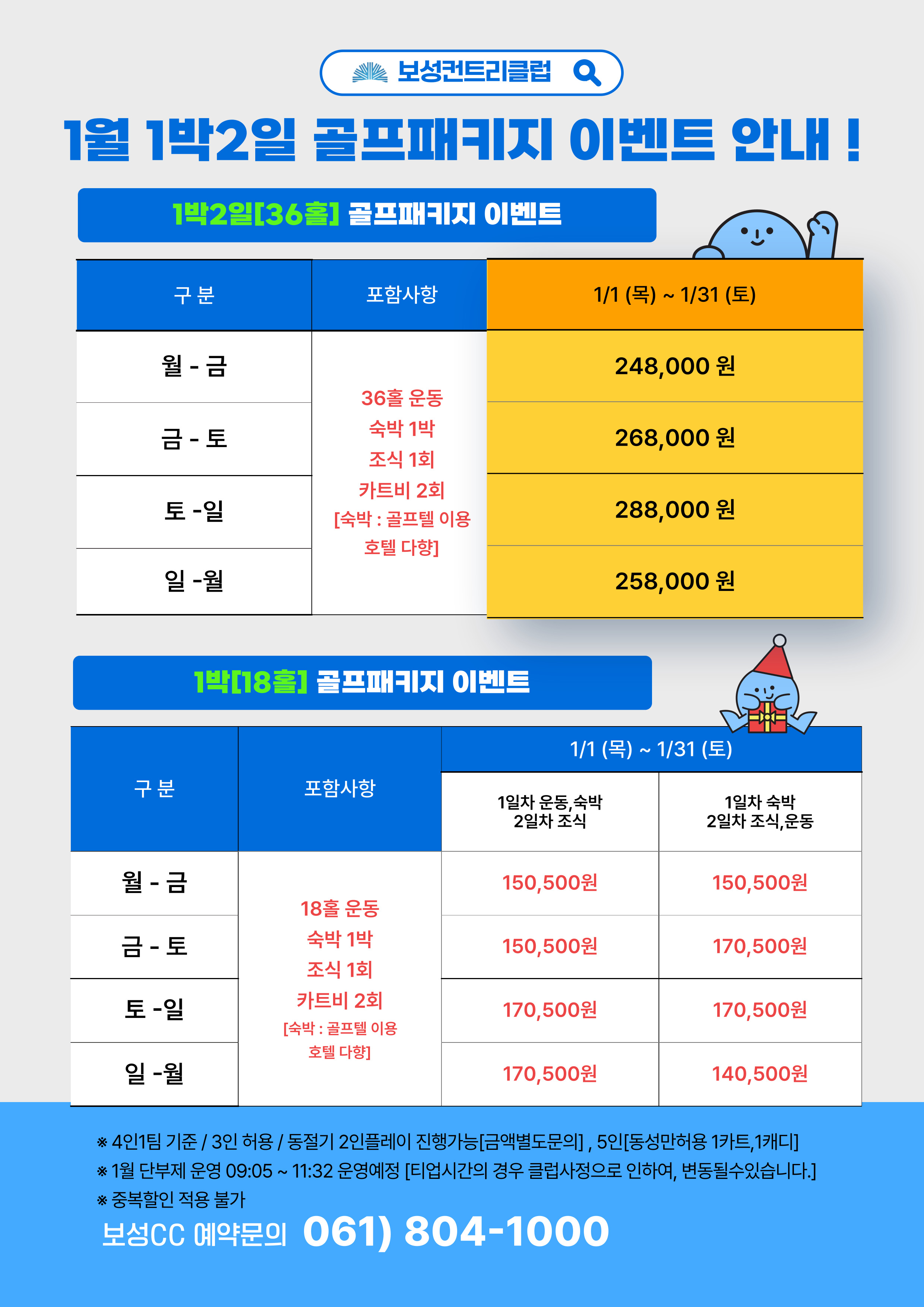 2인플레이 패키지 및 그린피 이벤트 안내!